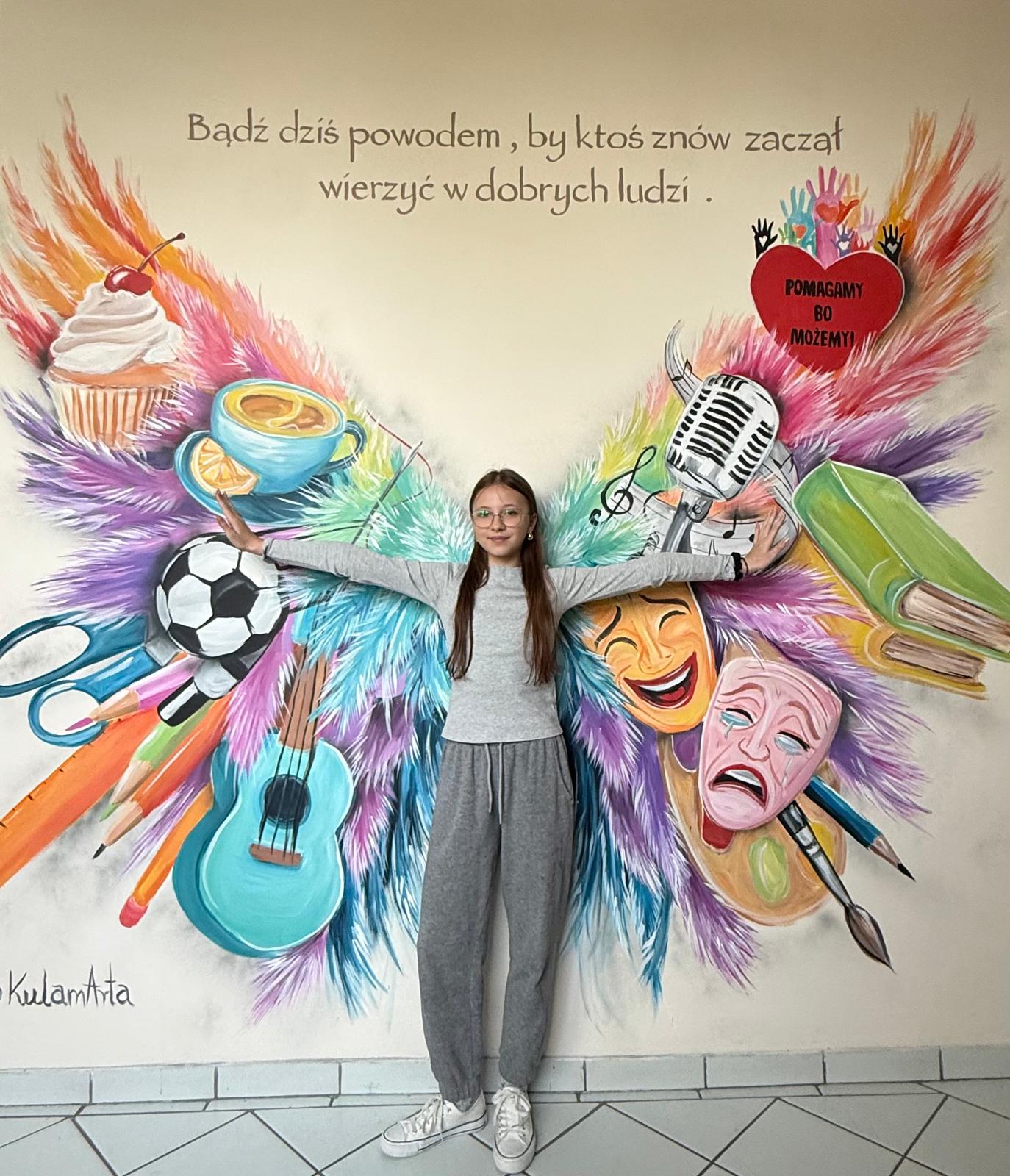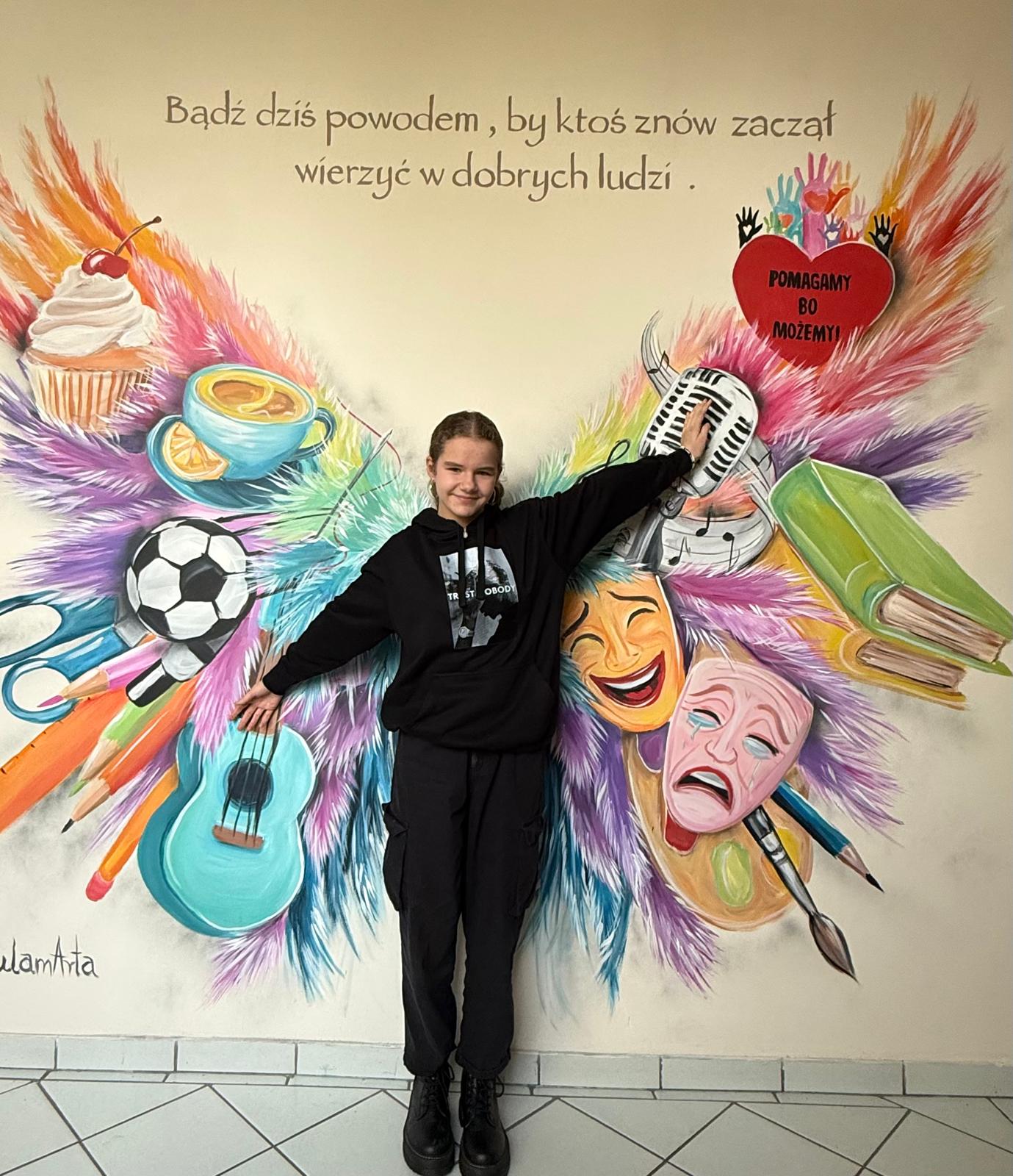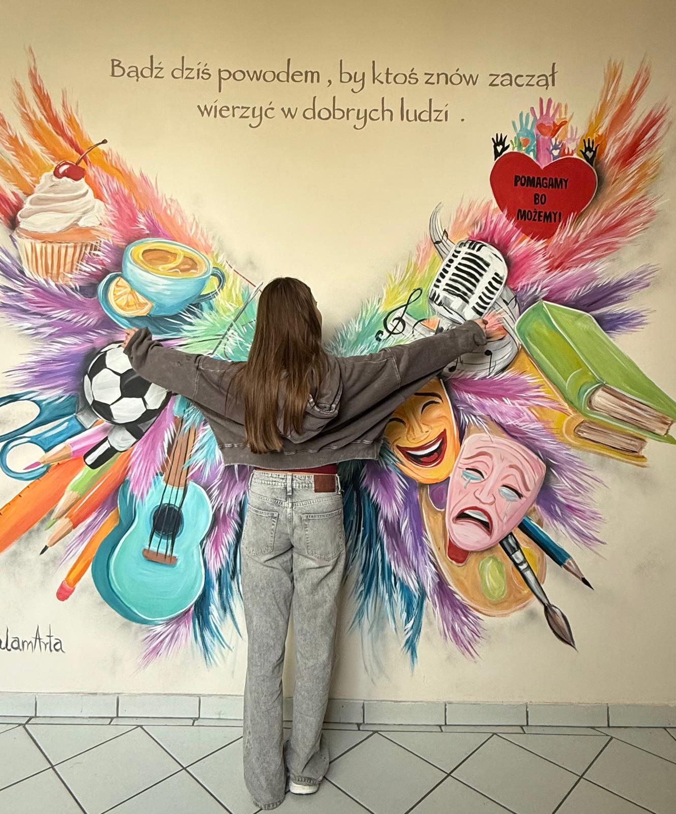 Anioły naprawdę istnieją🪽💖…w ostatnim czasie jeden w postaci Kula Marta zjawił się w naszej szkole, by jak to mówi trochę „napaćkać” i udało się🥰…przy wejściu do szkoły Pani Marta zmalowała nam przepiękne skrzydła💖, które każdego dnia na „dzień dobry” będą dodawać uśmiechu wszystkim uczniom i nauczycielom😊 A to jeszcze nie wszystko. W gabinecie psychologa również powstał malunek przedstawiający twarz pełną pozytywnych emocji🌸🦋🌼. Wyrażamy ogromną wdzięczność❤ Pani Marcie za czas poświęcony na wykonanie przepięknych prac🥰, pasję, talent🎨 a przede wszystkim okazane nam dobre serce❤ Nasze skrzydła są symbolem nowych początków, aby każdy dzień zaczynać z pozytywnym nastawieniem w myśl motta „Bądź dziś powodem, by ktoś znów zaczął wierzyć w dobrych ludzi”😊❤