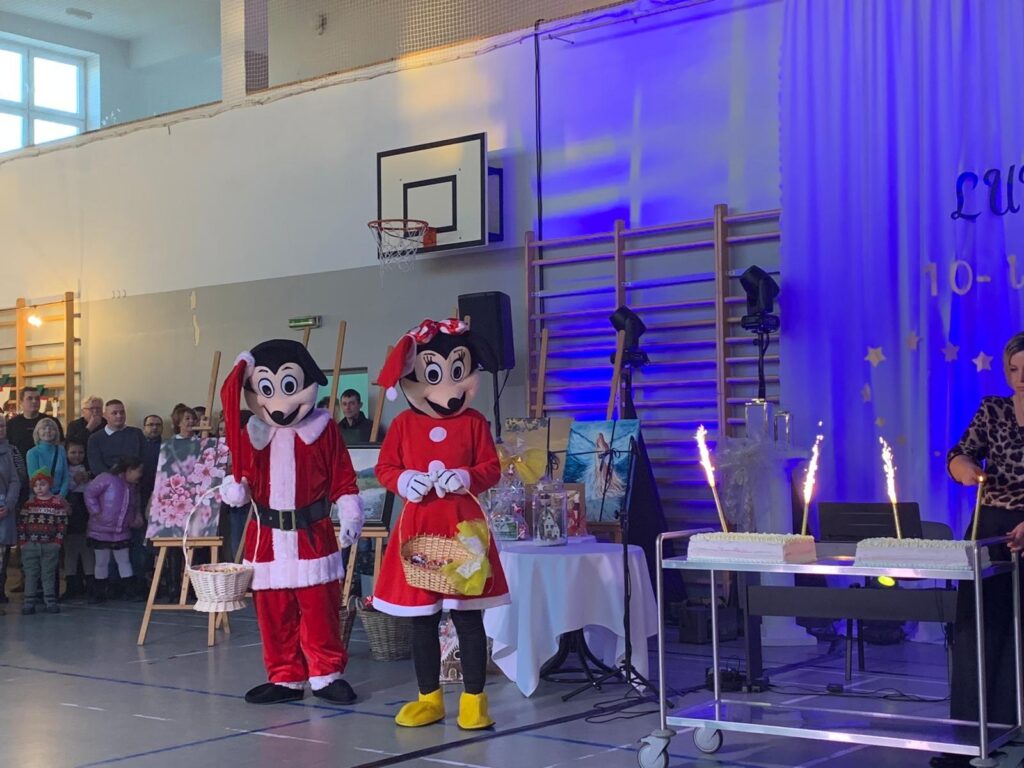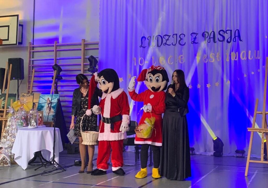 W tym roku na nasz X Jubileuszowy Festiwal Talentów „Ludzie z Pasją”💛💙przybył Mikołaj🎅 wraz ze swoimi pomocnikami oraz Myszka Miki i Myszka Mini, bo usłyszeli, że to jest wyjątkowe wydarzenie🌟. Przybyli, by w serduszkach najmłodszych pozostawić niezapomniane wspomnienia❤️🎄. Dziecięca radość, błyszczące oczy i szczere uśmiechy to był widok bezcenny, a jak się okazało nasi goście byli atrakcją i dla tych nieco starszych dzieci, bo któż by nie chciał wrócić na chwilę do dzieciństwa. Ten magiczny czas to nie tylko przekroczenie progu bajkowego świata, ale przede wszystkim budowanie więzi rodzinnej i celebrowanie chwil z najbliższymi🥰.