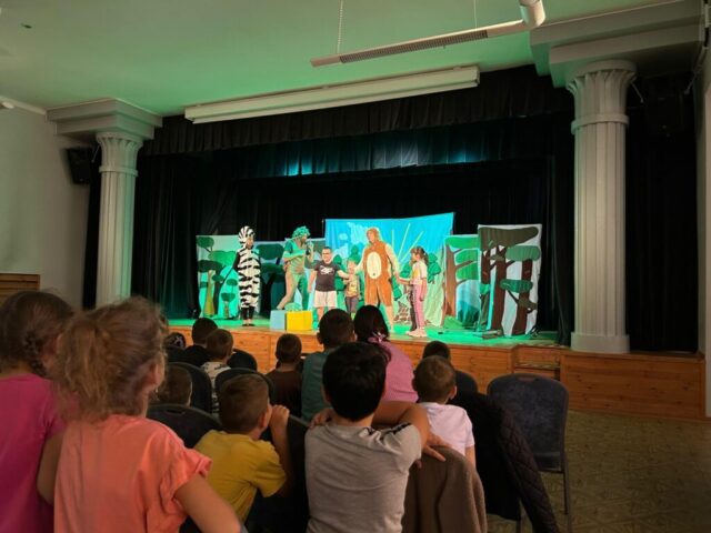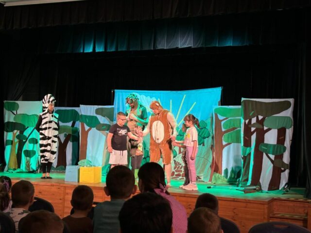 Z okazji „Dnia Sprzątania Świata”🌎uczniowie klas I–II mieli okazję obejrzeć spektakl teatralny pt. „Ucieczka z Zoo”🦧🦓którego głównym celem było rozwijanie postaw proekologicznych wśród dzieci💚Przedstawienie poruszało zagadnienia związane z ochroną środowiska🌿, takie jak zanieczyszczenie, konieczność segregacji odpadów oraz troska o czyste powietrze💦. Aktorzy zaprezentowali barwne i pełne humoru sceny, które angażowały najmłodszych widzów w przebieg przedstawienia😊