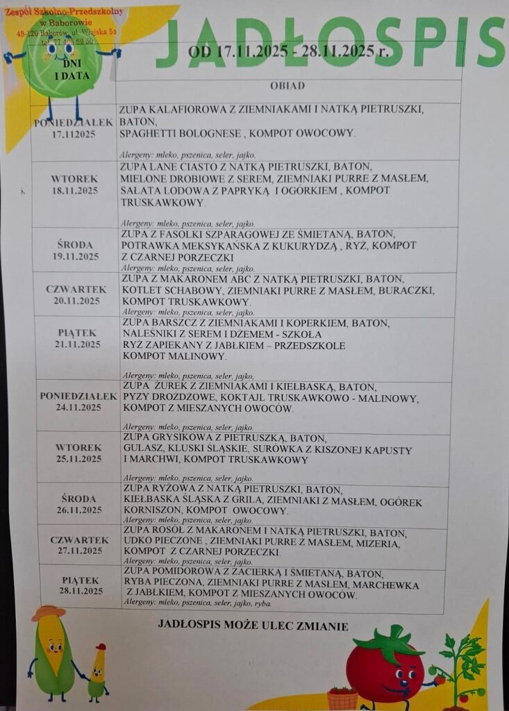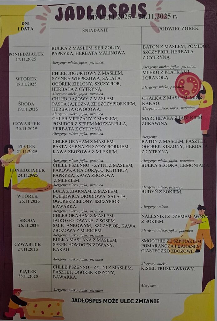 Jadłospis 17.11.2025 – 28.11.2025 r.