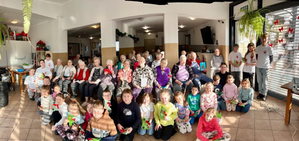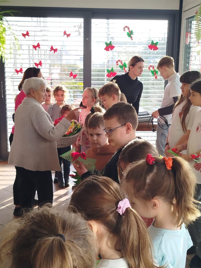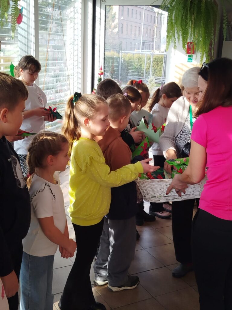 Wwolontariusze❤️ z uczniami klasy 1a udali się do seniorów z domu „Spokojna Przystań”