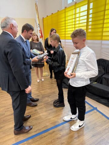 Dziś w Zespole Szkolno- Przedszkolnym w Pietrowicach podczas uroczystego apelu z okazji święta szkoły💛zostały wręczone uczniom dyplomy oraz nagrody za zajęcie czołowych miejsc w konkursach: wiedzy o naszym patronie Świętym Janie Pawle II 📚i konkursie plastycznym🎨.